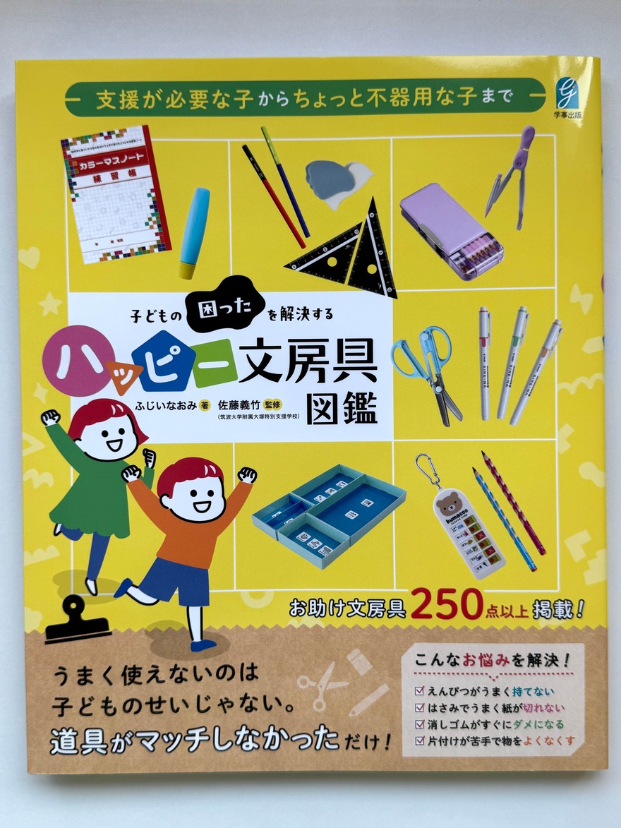 学事出版から出版された『支援が必要な子からちょっと不器用な子まで 子どもの困ったを解決するハッピー文房具図鑑』で「まほらゆったりつかう学習帳」が紹介されました。