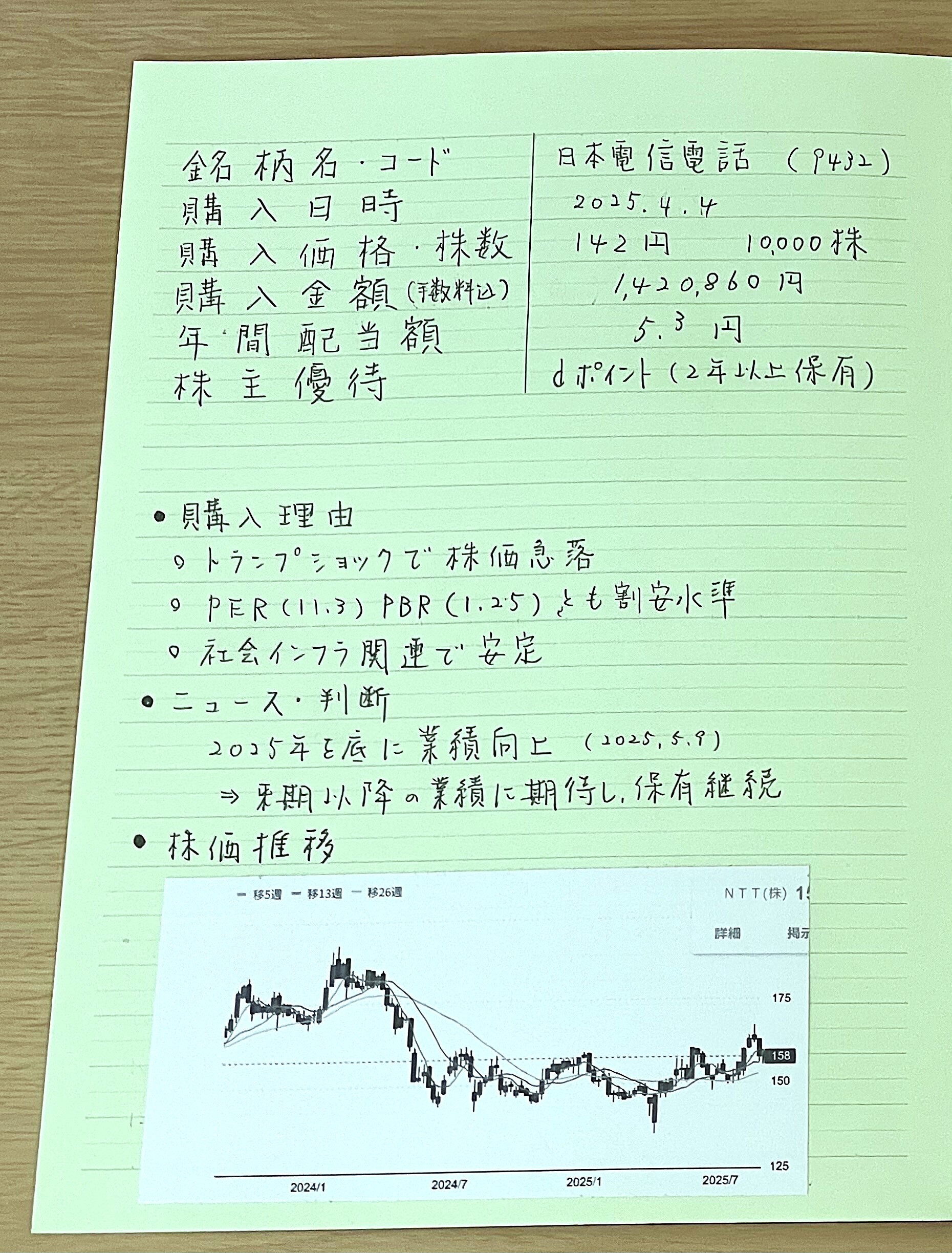 株ノートに、購入した企業の基本情報に加え、配当履歴、優待内容、そしてポートフォリオ全体の推移を定期的に記録することで、長期的な視点での資産形成を管理することができます 。