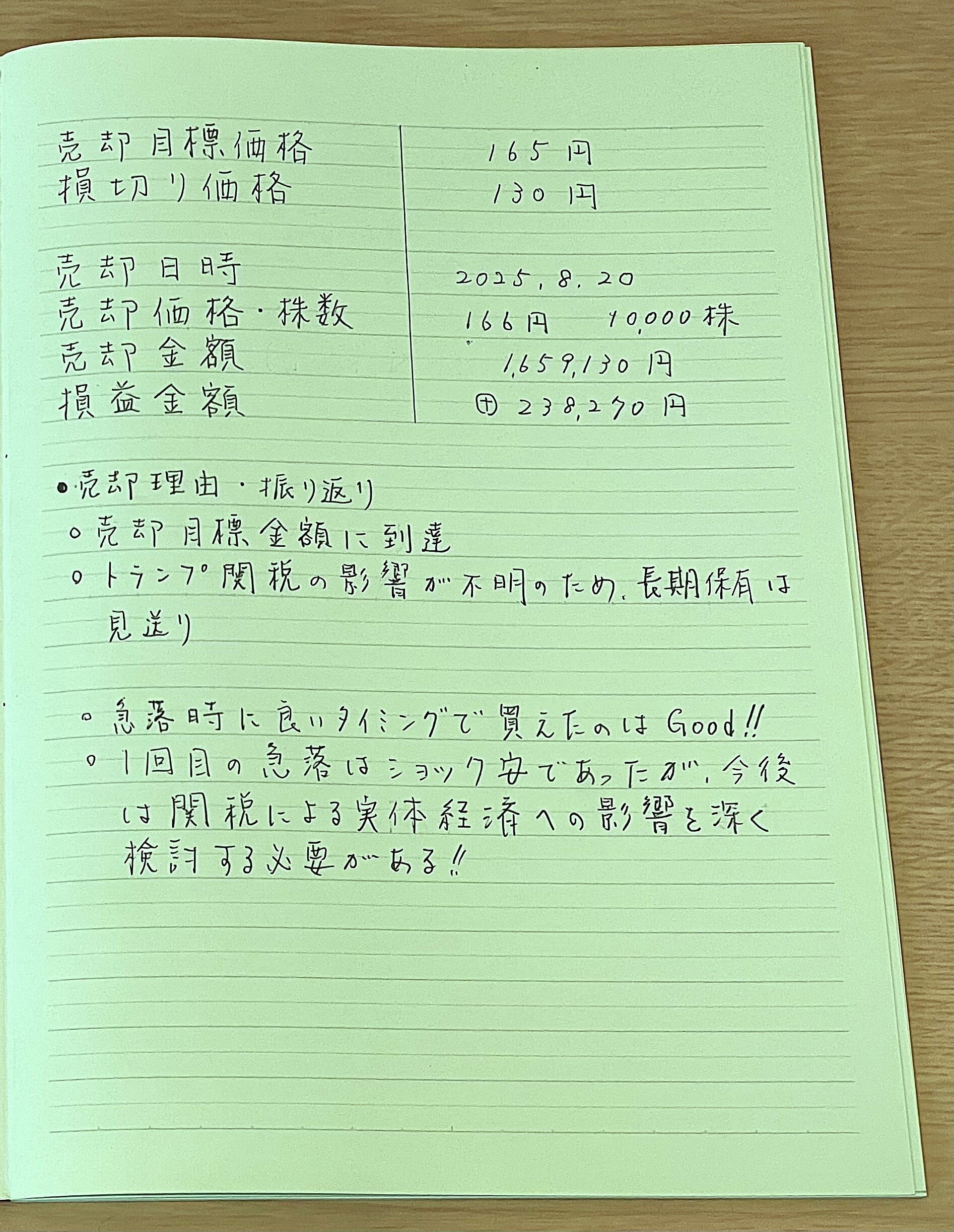【結果と損益】実際の売買結果を数字で残す: 最終的な損益を具体的な数字で記録します。