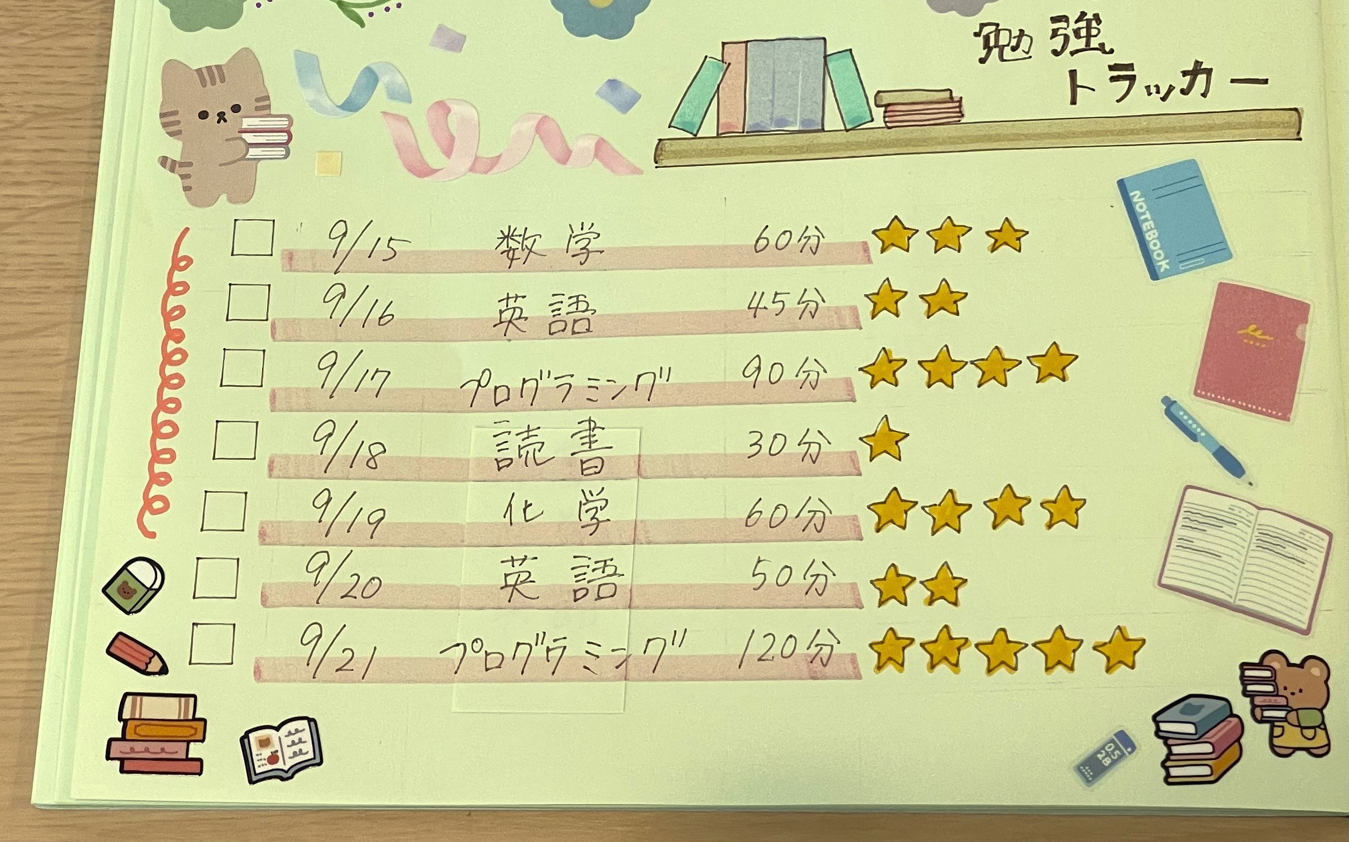 見える化をすることで、達成感を視覚的に感じることができそうです。