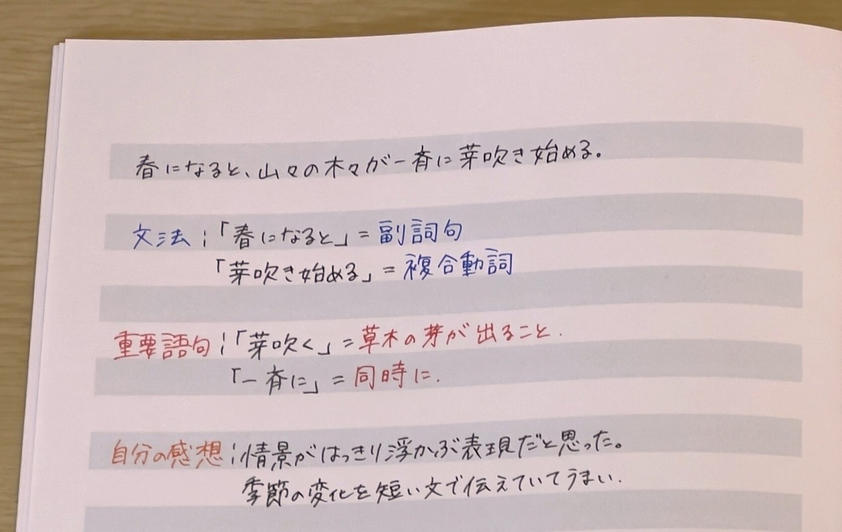 青=文法、赤=重要語句、オレンジ=自分の感想。