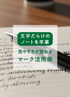 見出しに一貫したルールを持たせましょう。ノートの情報が“視覚的に整理された状態”になります。色、形、枠、マーカーの種類などを使い分けることで、どの情報がどのカテゴリーに属しているのかが一目で分かり、ノート全体が読みやすい構造になります。たとえば、赤は「重要項目」、青は「補足」、黄色は「タスク」、角丸の見出しは「アイデア」など、テーマごとにデザインを割り振ることで、ページをさっと見ただけで全体像をつかめるようになります。これは、ノートをよく使う人ほど効果を実感しやすいでしょう。さらに、この分類が習慣になると、頭の中で情報を整理する癖がつき、考えごとがスムーズにまとまるようになります。ノートの見出しは、情報管理の土台づくりにもつながっているのです。