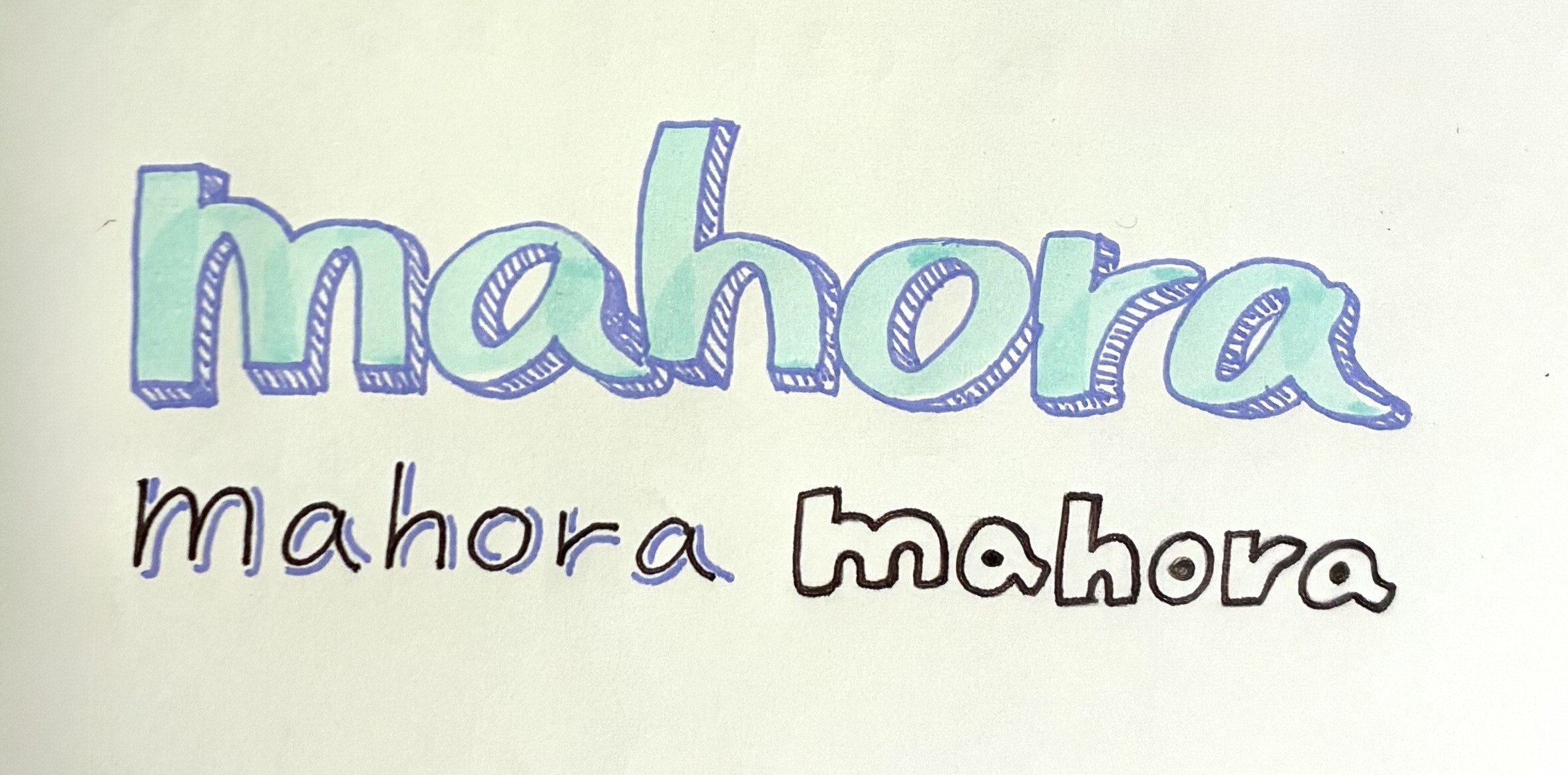 文字に影をつけたり、太字にしたりして、重要な見出しを際立たせるデザインです。見出しに奥行や厚みを持たせることで視線を集中させる効果が期待できます。まず、普段どおりの太さで見出し文字を書きます。この時点では、丁寧に整えすぎず、読みやすさを優先してまっすぐ書くことが大切です。次に、文字の右下や下側をペンで軽くなぞります。影は文字から少しずらす程度で十分です。塗りつぶさなくても立体感は生まれます。立体文字にしたい場合は、主線の外側をなぞるように細い縁取りを加えます。線を太くしすぎないことで、上品で見やすい見出しになりますね。