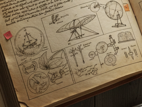レオナルド・ダ・ヴィンチが残した膨大な数の手稿(スケッチ、発明アイデア、解剖図など)は、この時期のノートの役割を象徴しています。
