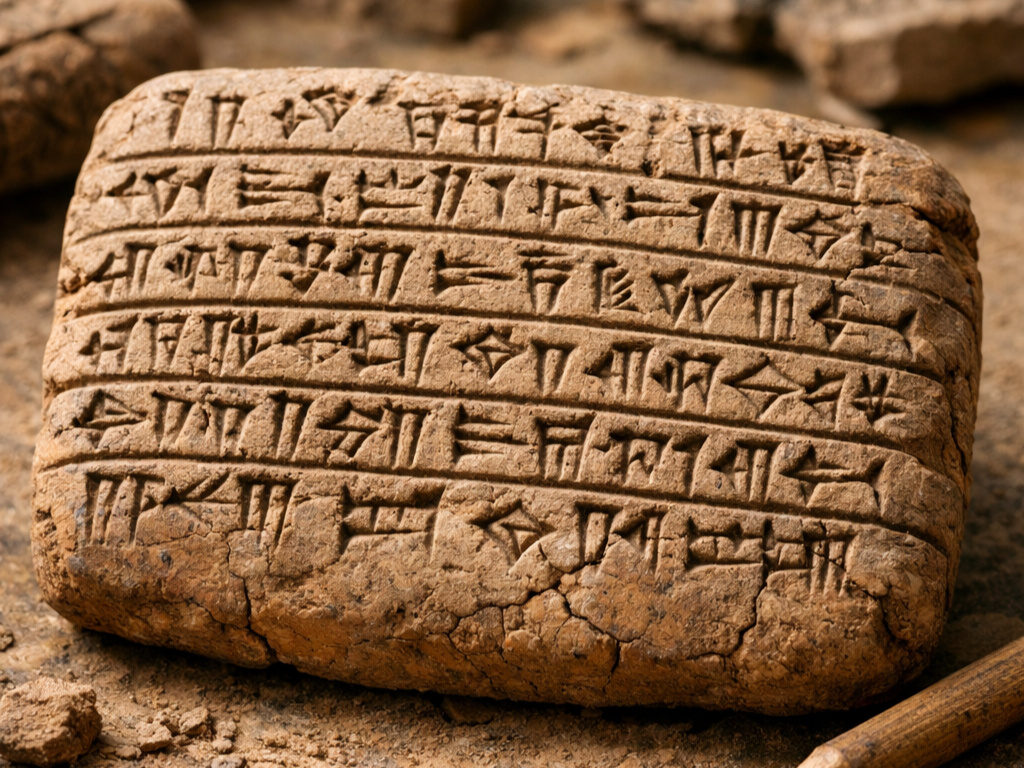 これは、湿った粘土の板に葦のペンで楔形文字(くさびがたもじ)を刻み、乾燥または焼成して保存するものでした。