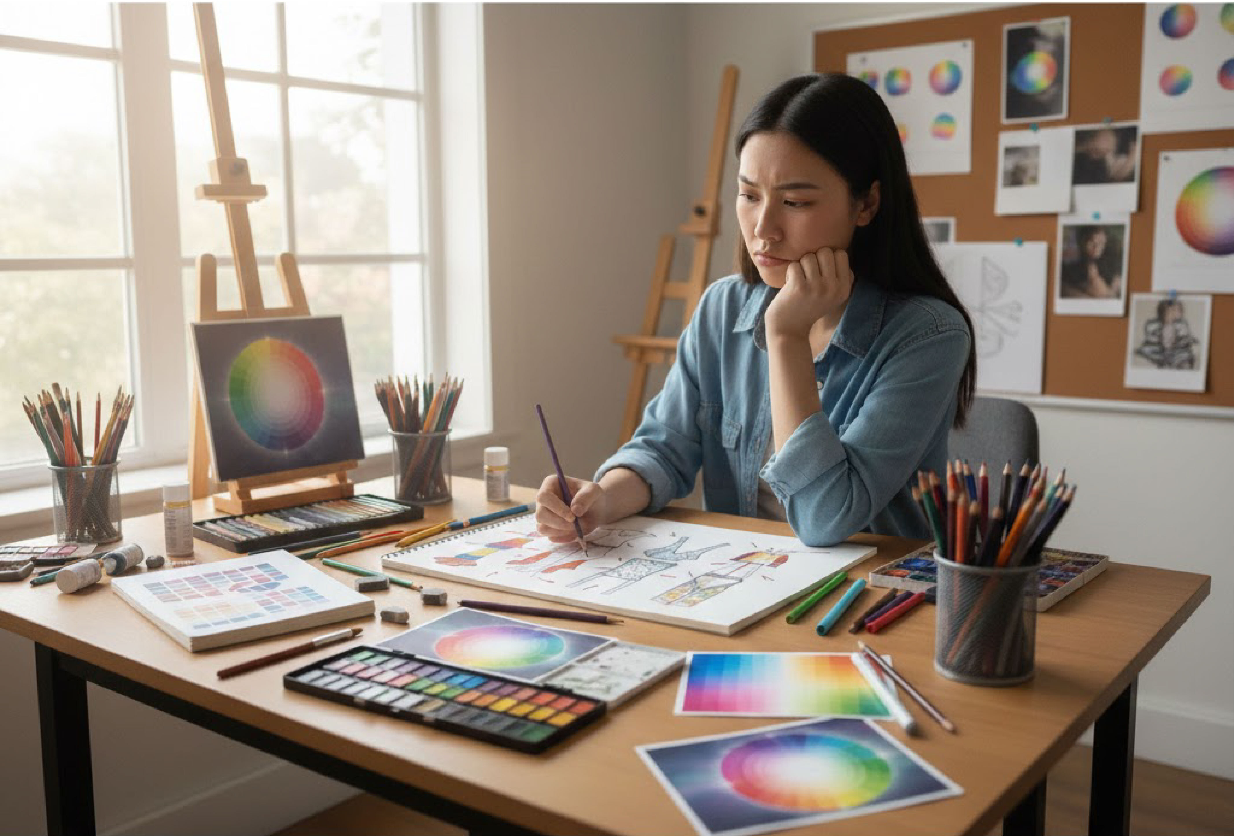 しかし、色彩や色相環を闇雲に丸暗記しようとするのはとても非効率です。