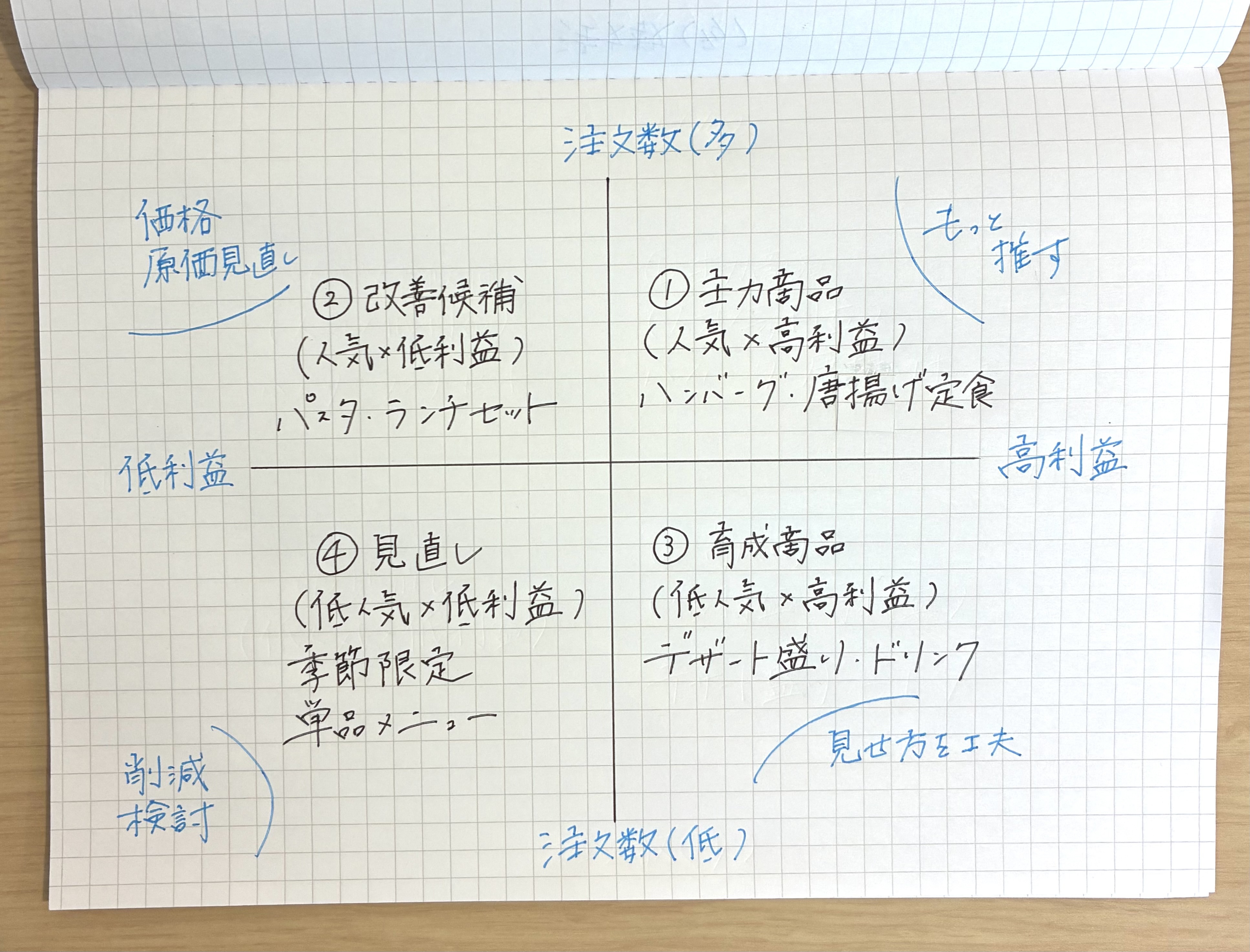 方眼ノートのマス目を利用して、これらのフレームワークを作ってみましょう。